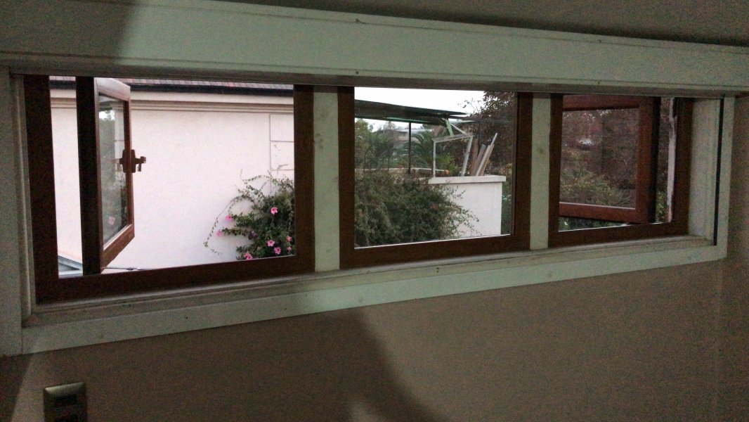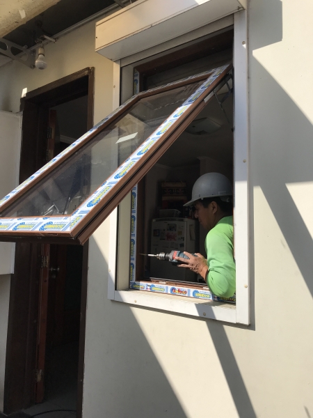 Proyecto de renovación de ventanas de aluminio, madera y fierro, todo monolítico por ventanas de PVC, Línea Europea, color Roble Dorado con termopanel de seguridad. Cara Norponiente con cristal Low-E (Baja transmisión térmica)