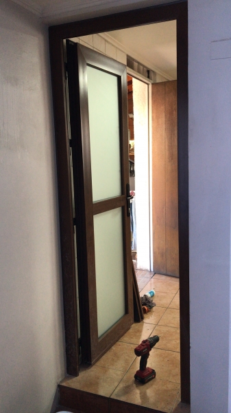 Remplazo de ventanas tradicionales de aluminio por ventanas de PVC Termopanel. Implementa puerta de PVC para separar ambientes, cocina y living.