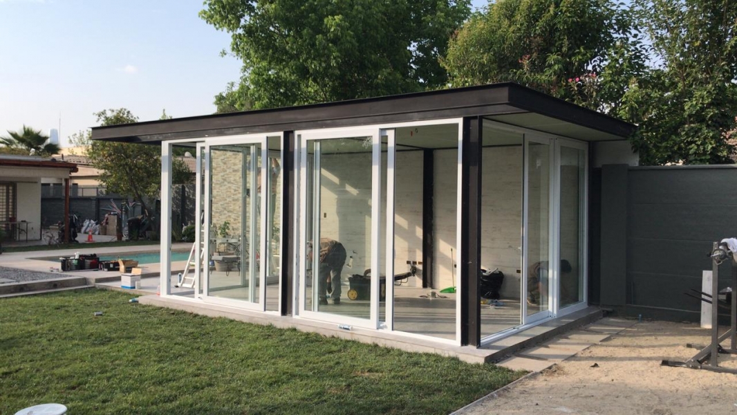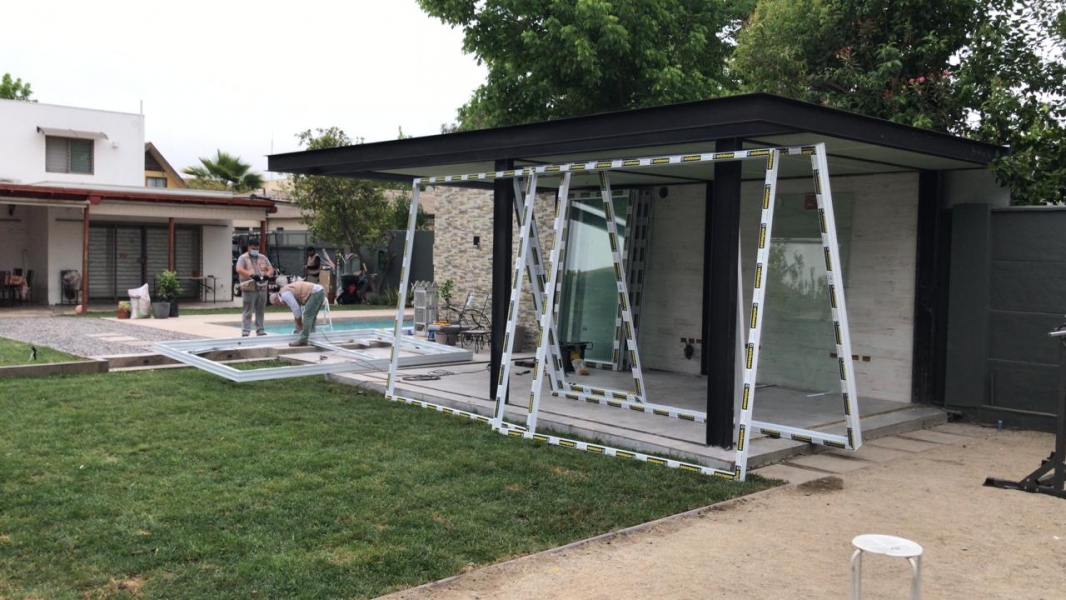 Cierre de Quincho con puertas corredera triple riel. Gran amplitud, contribuyendo a la integración de ambientes. Obra en Ñuñoa.