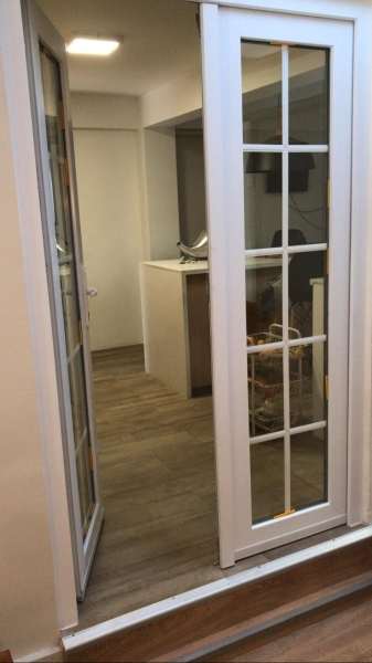 División de ambiente con puerta doble de PVC, con termopanel acústico y decorado con palillaje. Ideal para aislar ambientes y tener privacidades de ruidos. Aplicables a residencias, consultorios, colegios, oficinas y relacionados.