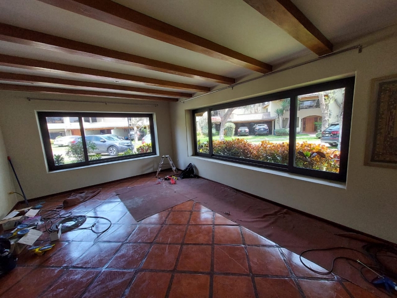 Proyecto integral: fabricación 100% en Chile, despacho marítimo, e instalación con técncios chilenos y apoyo técnicos peruano; desmontaje de existente. 90 m2 repatidos en: mamparas (triple riel 70% abertura), terraza, lining, comedor, habitaciones, baños, conicna, copa, servicio.