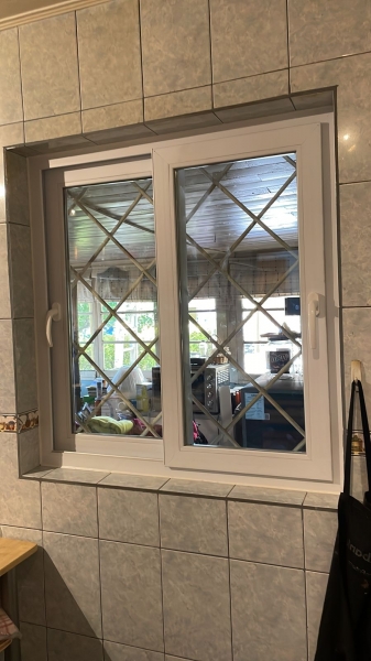 Renovación ventanas de madera por ventanas termopanel con palillaje y marcos y hojas de PVC cn control UV, color Roble Dorado.