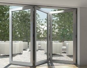 Puertas deslizante plegable, consta de varios hojas de puertas, que están conectados entre sí por bisagras y guía con rodamientos, dejando un espacio de libre paso.